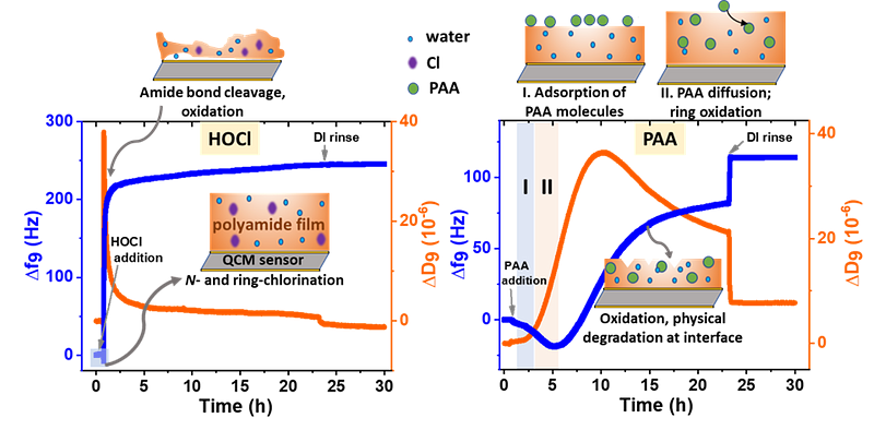 I adopted a polyamide synthesis method originally developed by Dr. Stafford's group at NIST (Johnson et. al. 2012). This involves molecular layer-by-layer (mLBL) deposition of the monomers trimesoyl chloride (TMC) and m-phenylenediamine (MPD). The generated mLBL film is ultrathin and ultra smooth that allows resolving chemical interactions of polyamide without the confounding effects of surface roughness.